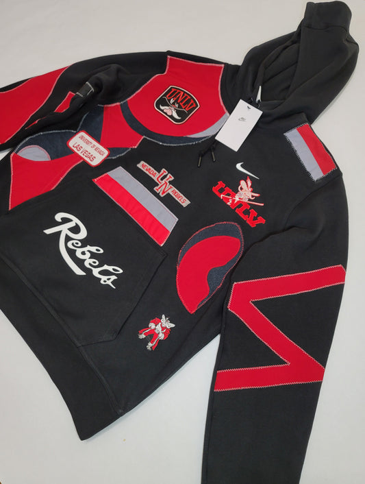 UNLV "RUNNIN REBELS" RETRO HOODED SWEATSHIRT (SIZE LARGE)