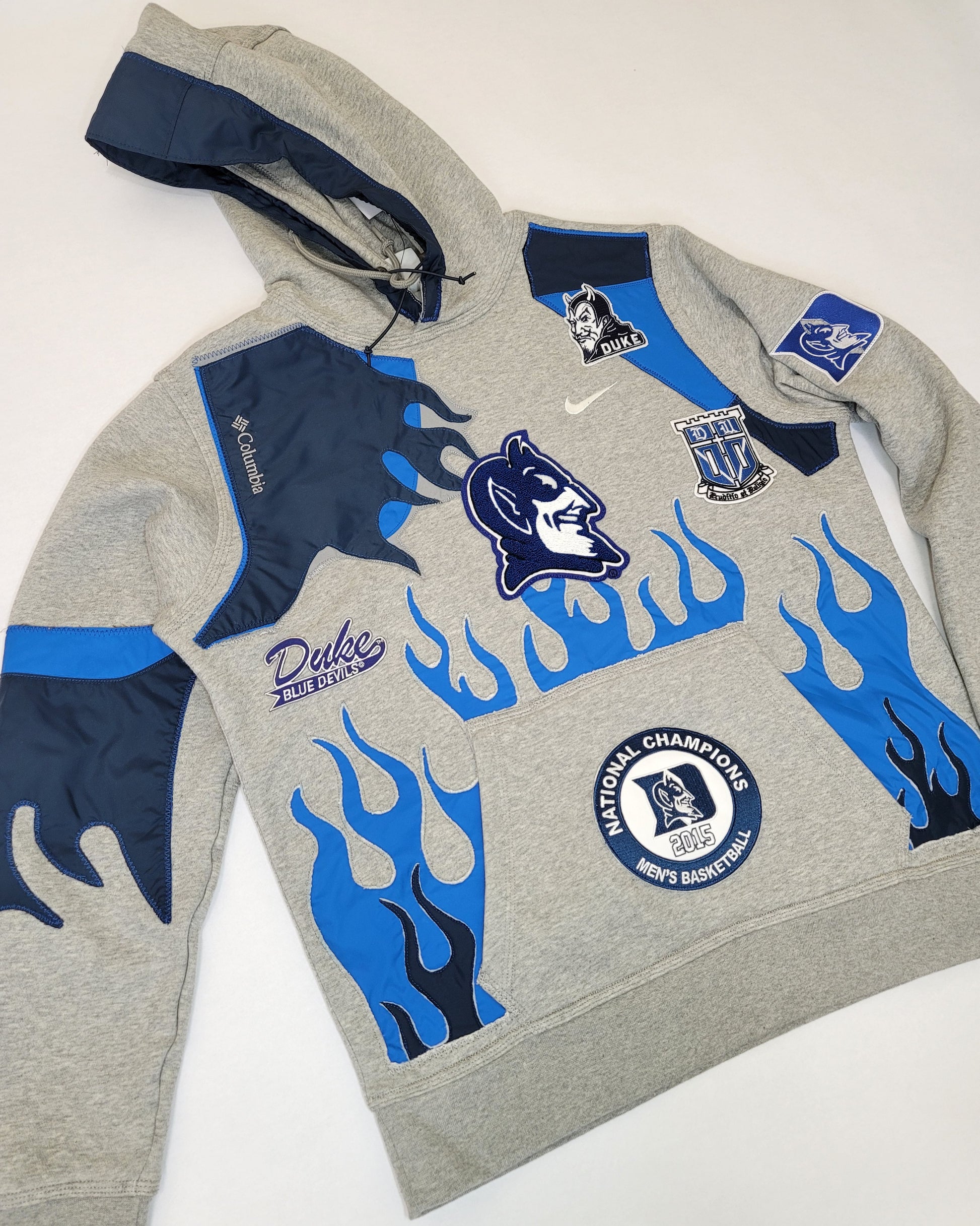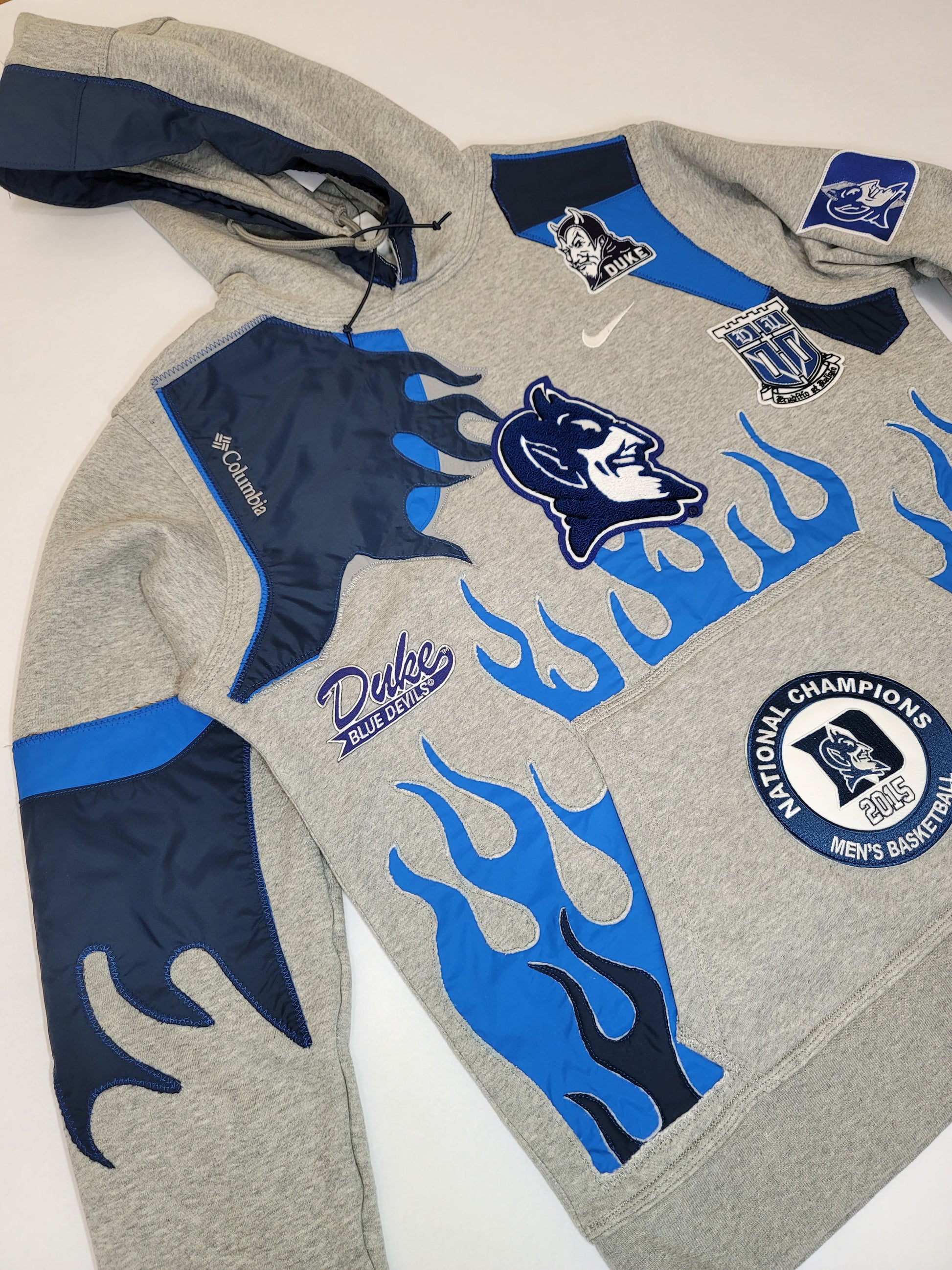 Retro meets rugged in this Duke Blue Devils x NIKE hoodie and vintage Columbia rain jacket fusion. Guaranteed to steal any show, fiery blue flames, and classic collegiate aesthetics🔥💙   SIZE LARGE BUT HAS A FORM FIT SO IF YOU'RE A MEDIUM IT WILL WORK.Â